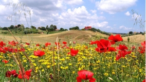 C’era una volta una casetta rossa su una piccola collina gialla e verde e poco distante un bel campo pieno di fiori gialli e tanti papaveri rossi