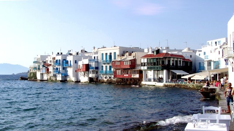 La vedete questa foto? Siamo in Grecia e precisamente nell’isola di Mykonos. Ma non è solo questo scorcio panoramico che puo’ meravigliare, ma la mia grande meraviglia è stata quella di un giorno che, passando con una barca sotto le case, ho visto che galleggiavano sull’acqua tovaglioli, mutandine, magliette, reggiseni ecc… e mi sono chiesta come mai solo su quella striscia di mare, ma senza darmi una risposta. Andando a mangiare al ristorante (a lato della foto), ho chiesto informazioni: la risposta? “Purtroppo quando cade un indumento dalla finestra o dal balcone e finisce in mare, non c’è la possibilità di raccoglierlo, ecco dov’è il problema”.