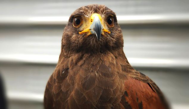 Non avrei mai immaginato di poter fare un bel ritratto al simpatico muso di un falchetto. E’ stato addestrato per scaccciare i piccioni da luoghi da proteggere dagli eventi negativi e, proprio con la sua presenza, tiene lontano le colonie di tutti i volatili indesiderati che impauriti volano altrove.