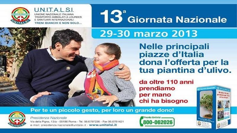 Sabato 29 e domenica 30 marzo, l’Unitalsi celebra la 13ma edizione della Giornata Nazionale, proponendo, in oltre 3000 piazze italiane, una “piantina d’ulivo”, simbolo di pace e fratellanza.